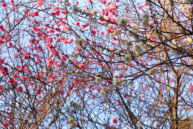 梅 Plum 長谷寺 古くから花のお寺と親しまれている長谷寺の境内には、寒さが残る時季、咲き始める梅は少しずつ春の訪れを感じさせてくれます。○交通:近鉄「長谷寺駅」から徒歩約20分【車】西名阪道天理ICから約40分○駐車場:あり(有料)○〒633-0112 桜井市初瀬731-1 ○問い合わせ先:TEL 0744-47-7001 長谷寺 談山神社 例年より一足早い春の訪れがありました。(2016.1.2撮影) ○交通:JR・近鉄桜井駅下車,奈良交通バスで「談山神社」下車○駐車場:あり○〒633-0104 桜井市多武峰319○問合わせ先:TEL 0744-49-0001 お旅所 樹幹内は樹皮を残して空洞化し、中から子木が伸びる。樹幹は、三度に渡る老化・腐朽によりジグザクに成長し、樹皮の割れ目より直接歯花芽が出て各所に群がって開花している。樹齢は共に300年以上、花は共に淡紅色中輪の八重咲、結果率は極めて低い。– 看板より-市指定天然記念物○住所 桜井市初瀬○西名阪 長谷寺から徒歩6分 長谷寺駅から16分○駐車場:なし