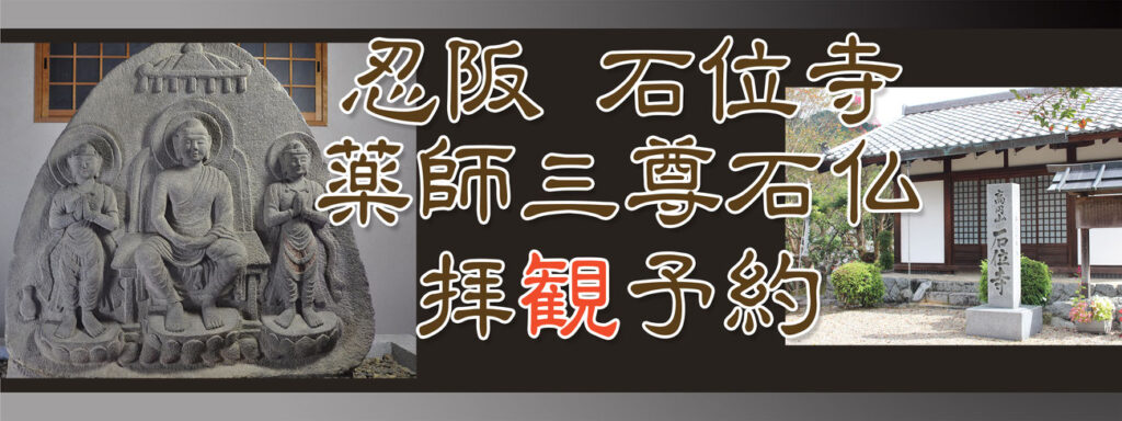 石位寺石仏拝観予約 予約がない場合、石造浮彫伝薬師三尊像の拝観はできませんので以下の申込フォームにて申込ください。※なお、予約は7日以上前までにお願いいたします。6日以内の拝観を予定されている場合、メールにてご相談ください。桜井市観光協会 kyokai@sakuraikanko.jp(平日9時~17時)平日17時以降、土日祝のメール受信・返信はできません。余裕を持ったスケジュールでお申込み・お問合せ下さい。※石位寺は無住寺のため忍阪区がおまもりしており、桜井市観光協会が予約業務を承っております。 参加人数 予約日 ※7日前までにお申込み下さい ※拝観できない場合もございますので、予めご了承下さい。 予約時間 ※拝観可能日時:年始年末を除く8時~17時 滞在時間(分単位) 会社名・団体名(非必須) お氏名 フリガナ 当日ご連絡が取れる電話番号 メールアドレス お住まいの都道府県 その他、ご質問やご要望などございましたら、こちらに入力ください。 プライバシーポリシーに同意する 6日以内の拝観予約で、土日祝拝観希望の予定の方は下記までメール下さい。①予約日 ②参加人数 ③お名前 ④メールアドレス ⑤(当日連絡のとれる)電話番号 ⑥お住まいishiidera@gmail.com