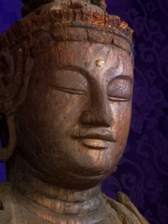 十一面観音菩薩立像(10世紀。左の写真)は像高、約2m、仏面から足底まで、本来は両腕までも共木でつくられ、内ぐりもないケヤキの一木造です。元はこの像自体を木心とし、上に麻と漆を重ねた乾漆像だったようです。穏やかで涼しげな表情がとても印象的なすばらしい仏さまです。