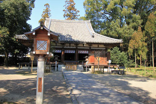 明治の神仏分離までは大神神社の神宮寺,大御輪寺(だいごりんじ)で、現在は大神神社の摂社「若宮さん」として知られています。祭神の大直禰子命(おおたたねこのみこと)は大物主大神の子孫で、ほかに 少彦名命と活玉依姫命の二柱を配祀しています。